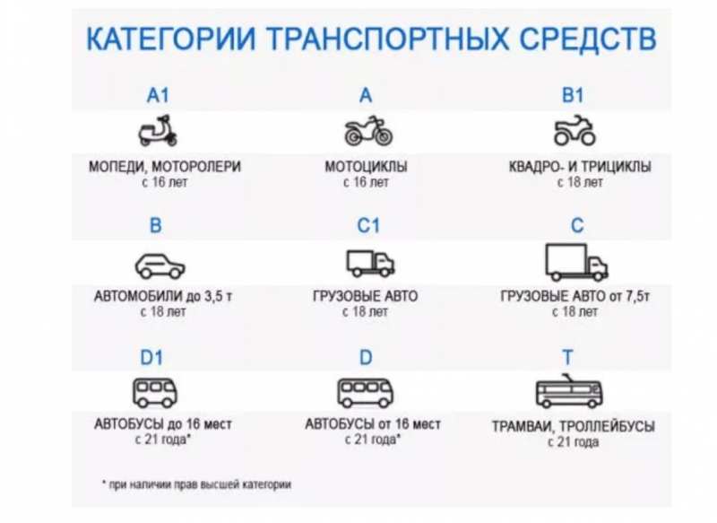 • Обучение и получение прав всех категорий: A, B, C, D, A1, B1, C1, D1, C1E, D1E, BE, CE, DE.