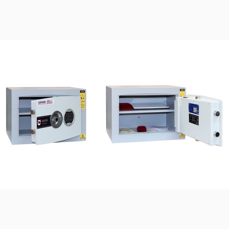 Интернет-магазин сейфов VinCom предлагает заказать оригинальный взломостойкий сейф Грифон H.30.E.SL с быстрой доставкой в городе Киев и по всей Украине. Технические характеристики взломостойкого сейфа Griffon H.30.E.SL: масса 58 кг, объем 25 л, толщина металла двери 14 мм, толщина защитного слоя 25 мм, взломостойкость 1 класс по EN 1143-1, ригельная система трехстороннего действия, электронный кодовый сейфовый замок SmartLock, порошковое покрытие, цвет серый (RAL 7040, RAL 7035), ширина 435 мм, глубина 324 мм, высота 310 мм.