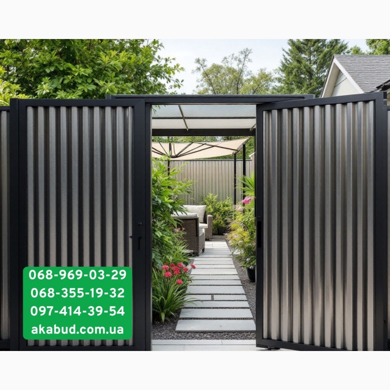 1) Паркани: профнастил, європаркани, зварні та ковані конструкції