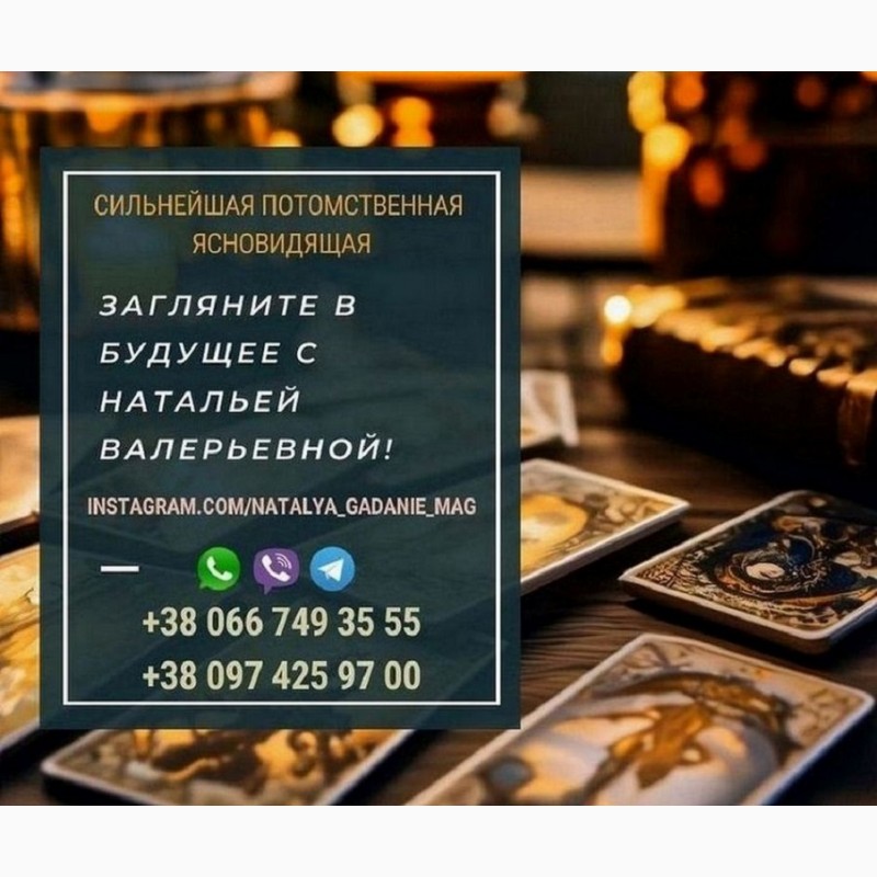 Меня зовут Наталья, я потомственная ясновидящая с практикой более 25 лет. Диагностирую проблему и найду выход. Предлагаю полный спектр магических услуг: