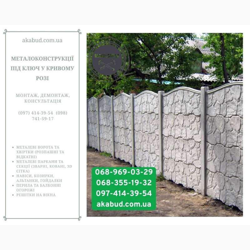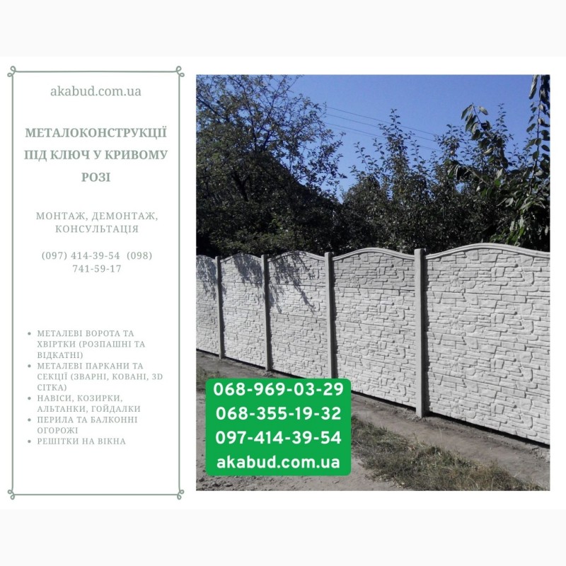встановлення паркану, бетонні кільця КС, європаркани купити, бетонні паркани Україна, шлакоблоки ціна, виноградні стовпи бетонні, ЗБВ кільця септик, щілинні плити для свиноферм, тротуарна плитка від виробника, бетонні вироби з доставкою, бетонний паркан монтаж