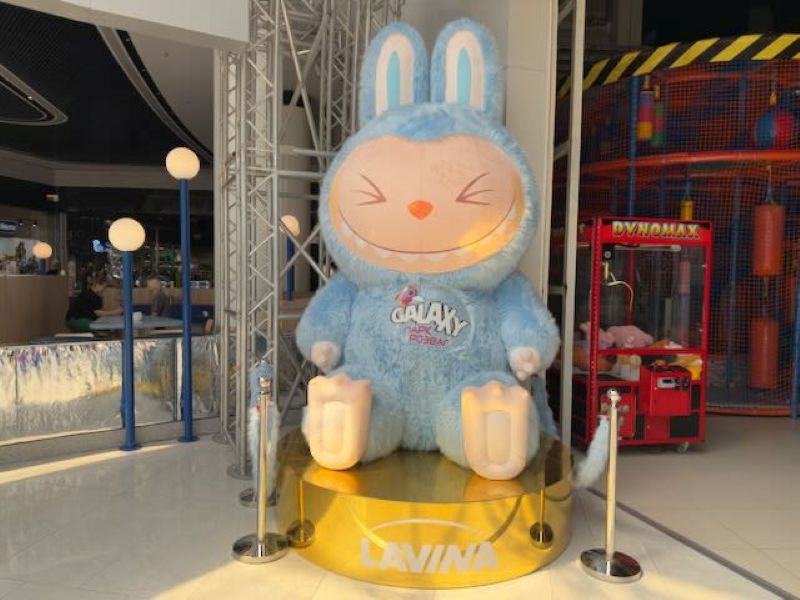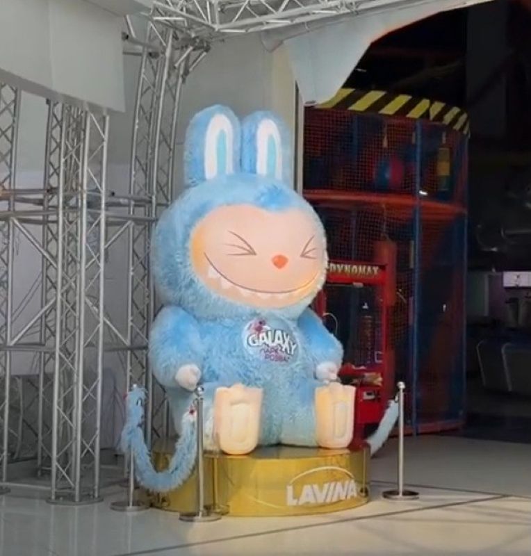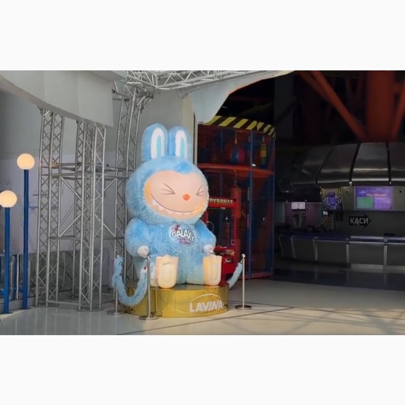 Лабубу надувной компании Слон сшит из мягкого искусственного меха, предназначен для использования в помещении, на улице — в зависимости от погоды.