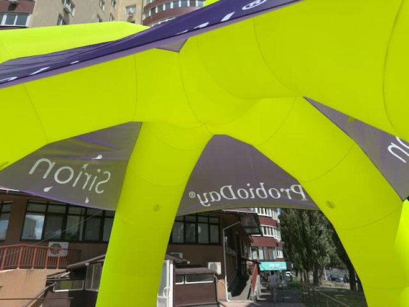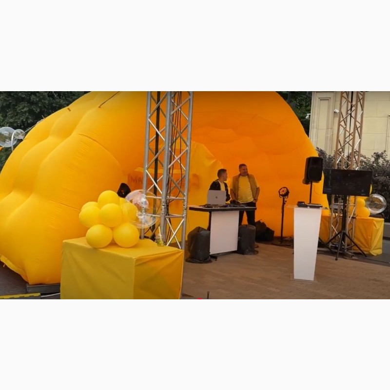 Надувная рекламная палатка шатер на четырех опорах компании Слон похожа на мобильную надувную студию, подходит для