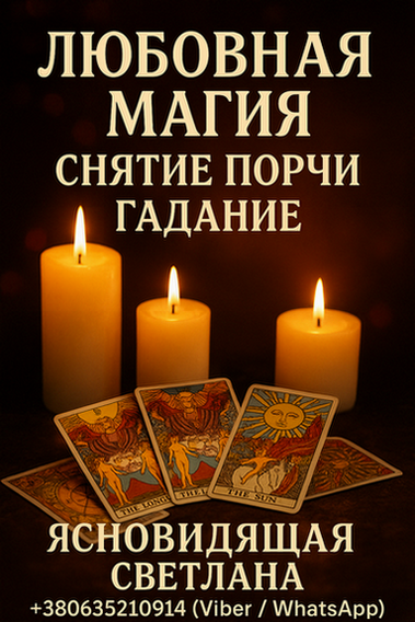 Светлана — одна из самых сильных ясновидящих и тарологов с многолетним опытом. Она помогает людям, которые столкнулись с трудностями в любви, семье, здоровье, карьере или сложными жизненными ситуациями. Благодаря наследственному дару и глубокой духовной практике Светлана помогает восстановить внутреннюю гармонию и изменить судьбу в лучшую сторону.