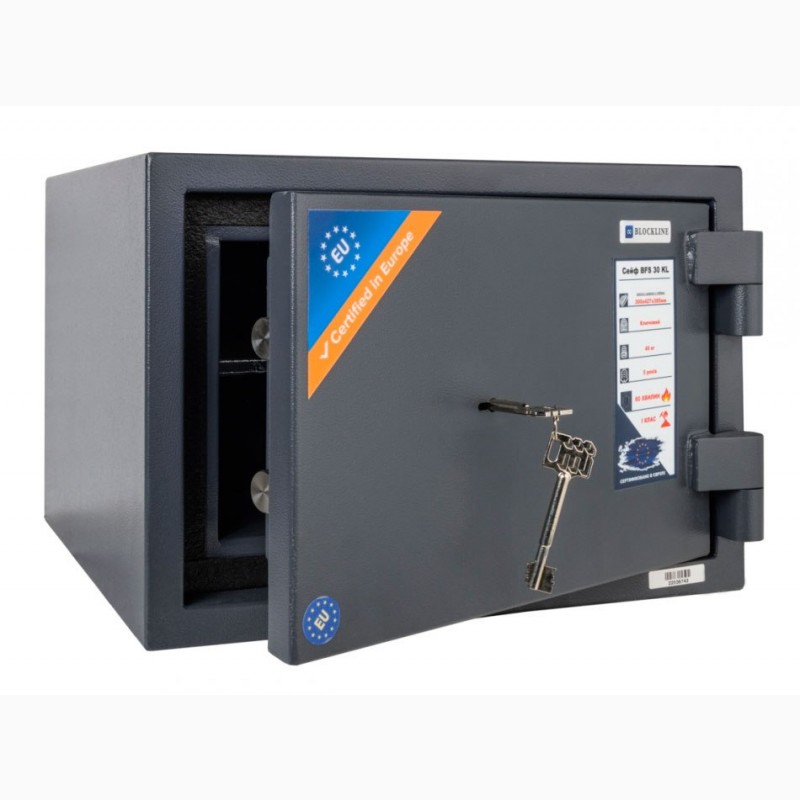 Інтернет-магазин VinCom являється офіційним дилером Blockline в Україні та пропонує замовити сучасний сейф вогне-зламостійкий Blockline BFS 30 KL з доставкою. Технічні характеристики вогнезламостійкого сейфу Blockline BFS 30 KL: вогнестійкість по EN 15659 LFS 30P клас, зломостійкість по EN 1143-1 I клас, ключовий замок, зовнішні розміри (ВхШхГл) 300x427x410 мм, внутрішні розміри (ВхШхГл) 170x316x235 мм, колір RAL 7024 (Сірий графіт), тристороння система замикання, внутрішній об'єм 13 л, 1 полиця, вага 49 кг.