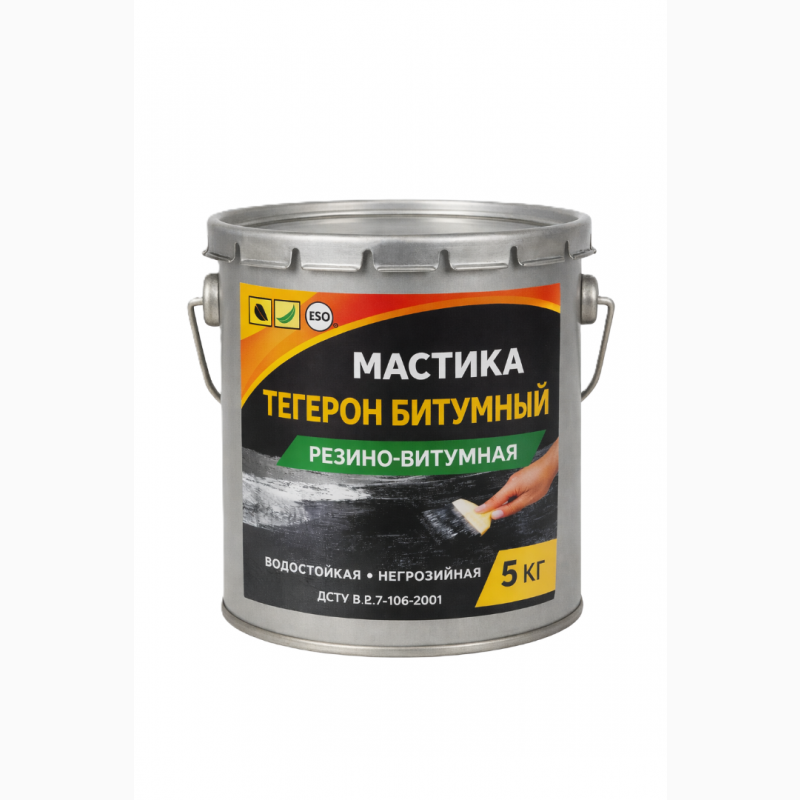 ТЕГЕРОН Битумный ЭКОБИТ ведро 5,0 кг мастика резино-битумная ДСТУ Б В.2.7-106-2001 Представляет собой гидроизоляционную герметизирующую строительную мастику, изготовленную на основе бутилкаучука, битума и других технологических добавок.