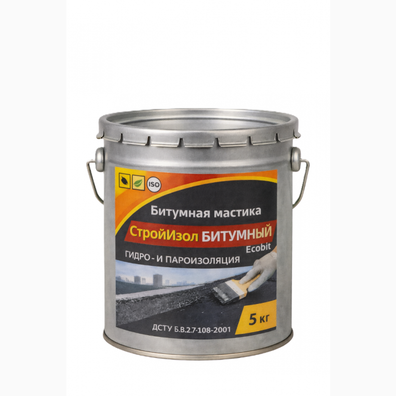 Битумная мастика СтройИзол Битумный ЭКОБИТ ведро 5, 0 кг ДСТУ Б В.2.7-108-2001, Днепр