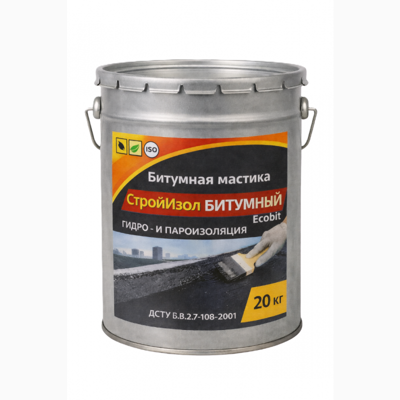 Битумная мастика СтройИзол Битумный ЭКОБИТ ведро 20, 0 кг ДСТУ Б В.2.7-108-2001, Днепр