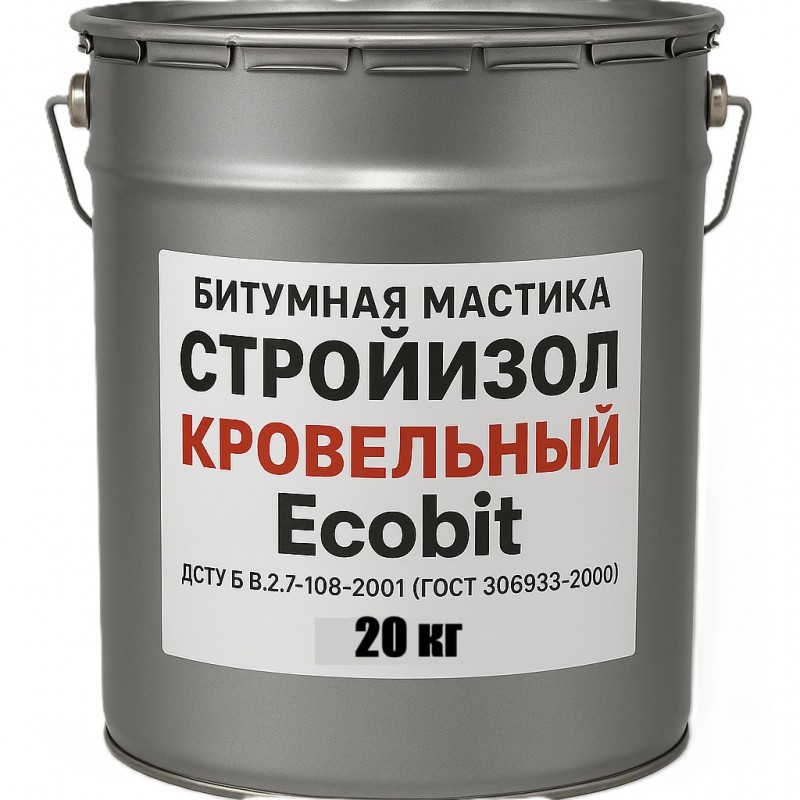 Битумная мастика ведро 20,0 кг СтройИзол Кровельный Ecobit ДСТУ Б В.2.7-108-2001 ( ГОСТ 30693-2000) Представляет собой герметизирующую, гидроизоляционную, антикоррозионную нетвердеющую мастику, изготовленную на основе бутилкаучука, битума, латекса и других технологических добавок.