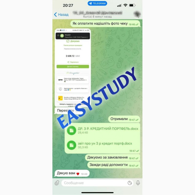 Звертаємо Вашу увагу, що EasyStudy Company не продає жодних наукових праць або документів про освіту! Надаємо послуги виключно з пошуку, обробки та структурування інформації, згідно вимог замовника. Зібрані матеріали не являються науковою роботою, але можуть бути використані в якості прикладу для самостійного написання.