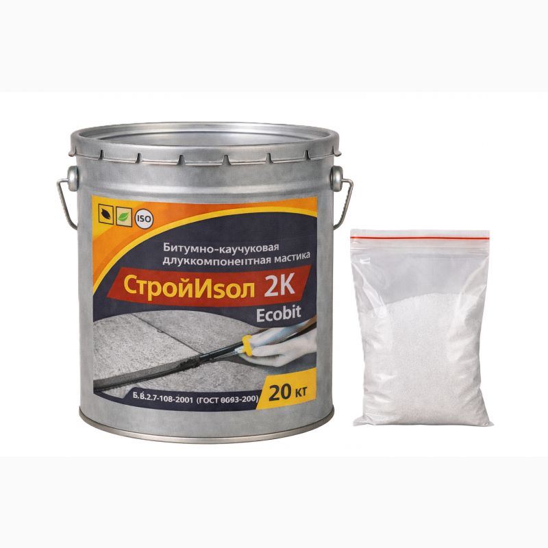 Битумно - каучуковая двухкомпонентная мастика СтройИзол 2К Ecobit Б В.2.7-108-2001 (ГОСТ 30693-2000)