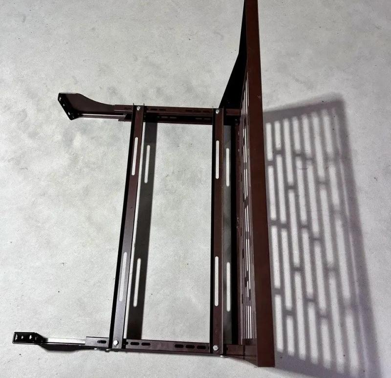 Корзини складаються з регульованих кронштейнів та металевого короба з перфорацією, яка забезпечує належне функціонування кондиціонера. Встановлення таких корзин рекомендується для продовження терміну служби зовнішнього блоку.