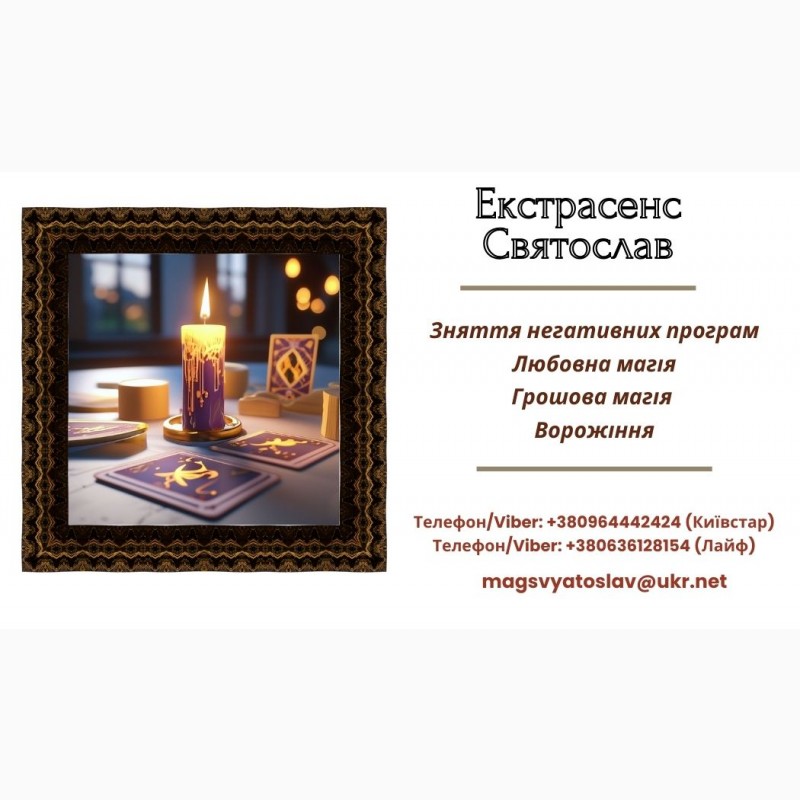 Коли стикаєшся з труднощами, які неможливо вирішити звичайними методами, магія стає потужним інструментом для повернення контролю над життям. Екстрасенс Святослав - досвідчений маг і фахівець з езотеричних практик, який уже допоміг сотням людей впоратися з проблемами, використовуючи силу стародавніх ритуалів і глибоке розуміння роботи з енергіями.