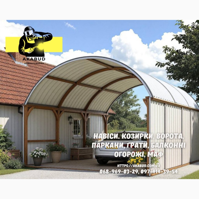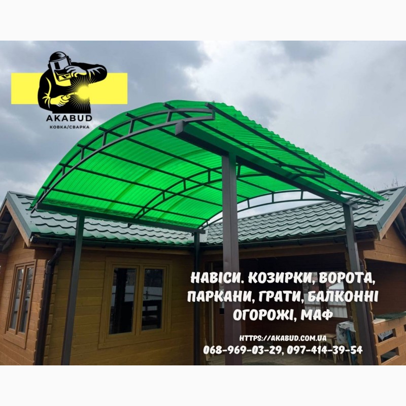 Работаем под ключ. Прочные, стильные и долговечные конструкции. Материалы: профлист, монолитный и сотовый поликарбонат. Бесплатный расчёт за 5 минут. Работаем по всей Украине. Всегда на связи и на совесть.