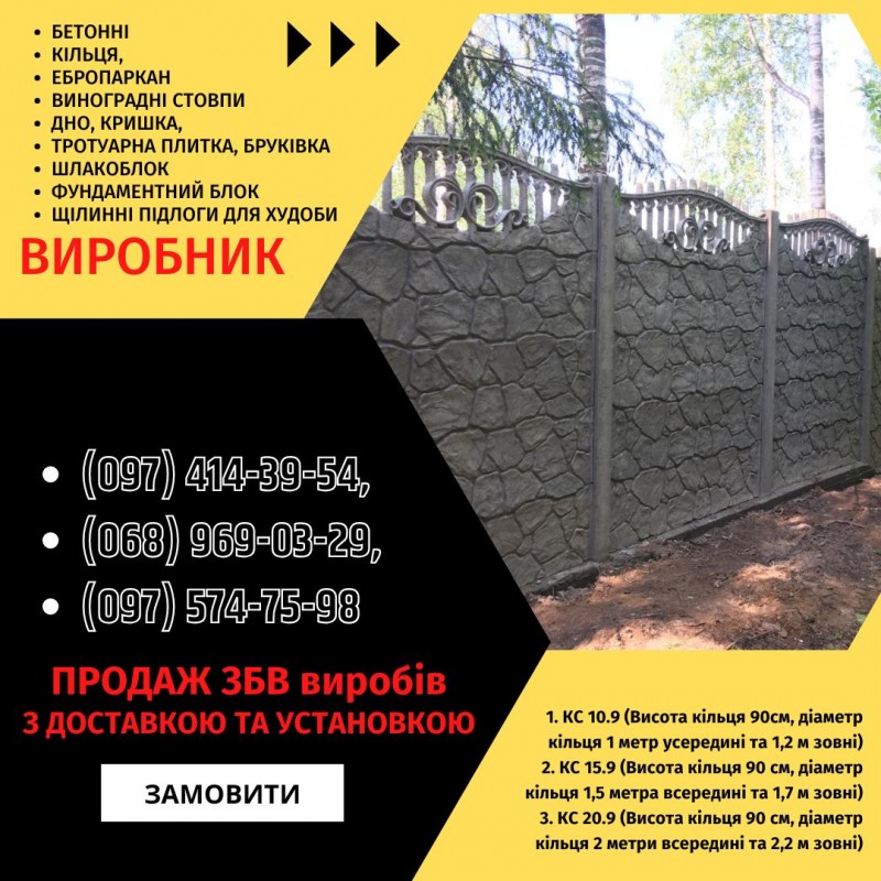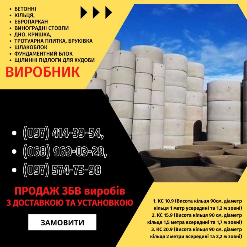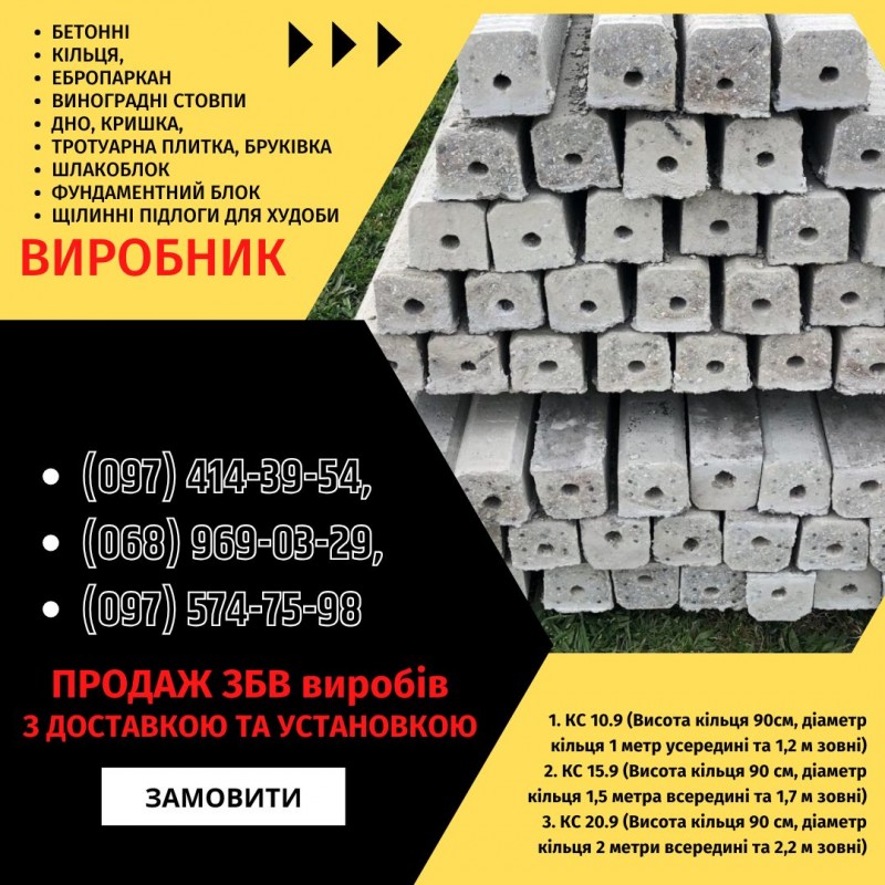 ЗБВ-вироби, шлакоблоки, кільця, бордюри, виноградні стовпи