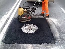 3. Засипати асфальт шаром товщиною 30-50 мм і розрівняти його з поверхнею дороги