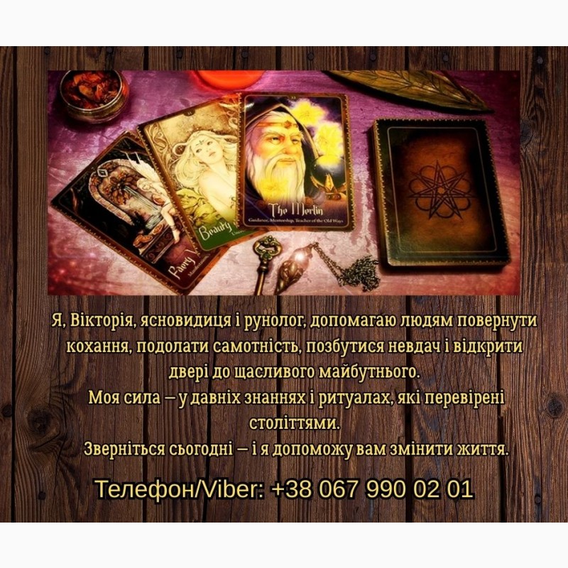 Потрібен екстрасенс у Тернополі або допомога таролога? Мене звати Вікторія, я ясновидиця, екстрасенс, рунолог і таролог, і я допомагаю людям змінювати своє життя, повертати гармонію і знаходити вихід навіть із найскладніших ситуацій.