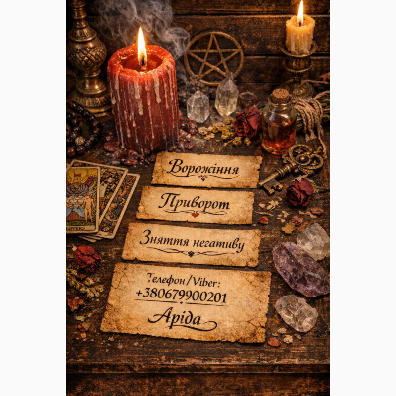 Мене звуть Арида, я практикуючий маг з багаторічним досвідом. Допомагаю людям повернути гармонію у особисте життя, відновити почуття, зняти негативні програми та енергетичні блоки. Працюю як особисто, так і дистанційно по фотографії — незалежно від вашого міста та країни.