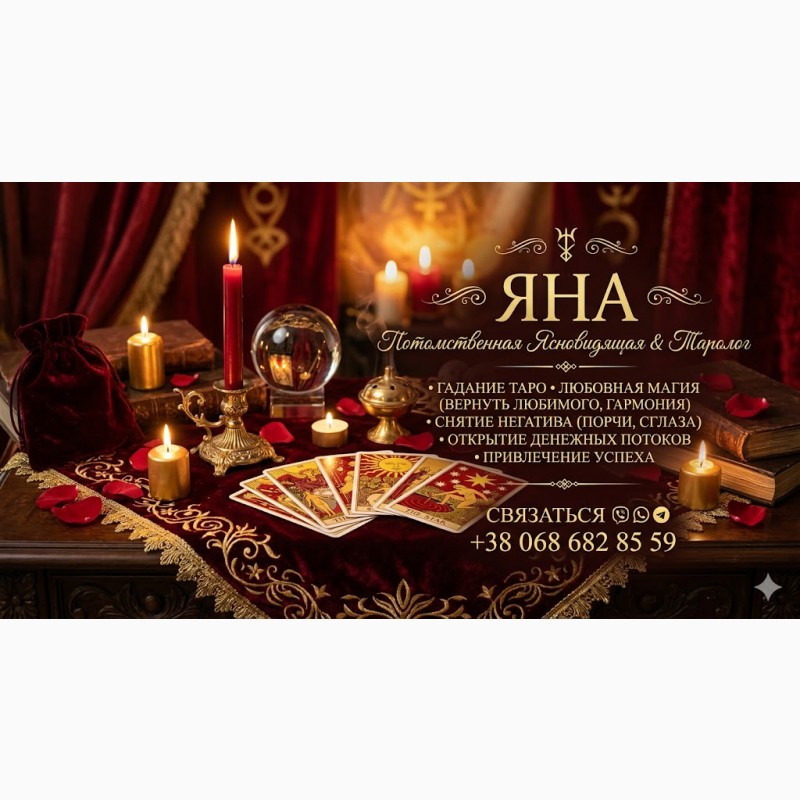 Если вы ищете ответы на важные вопросы, чувствуете, что в жизни что-то идет не так, или хотите изменить свою судьбу к лучшему, Яна готова вам помочь. Она потомственная ясновидящая и таролог с глубокими знаниями эзотерики, владеющая методиками белой магии, которые помогают точно определить причины сложных ситуаций и найти наилучший путь их решения.