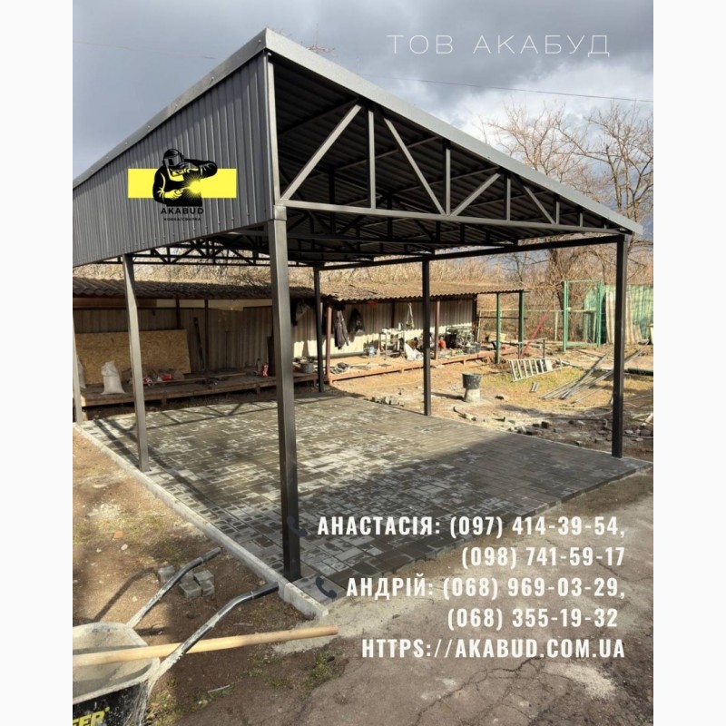 • Навіси для авто та дворів (профлист, полікарбонат, металочерепиця, профлист)